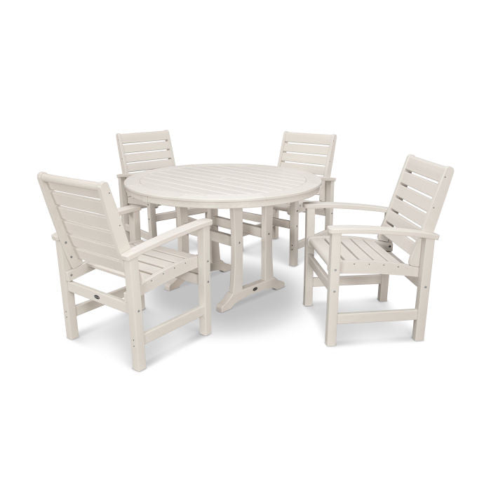 Signature 5-Piece Round Dining Set with Trestle Legs