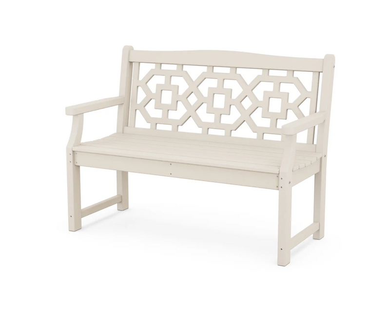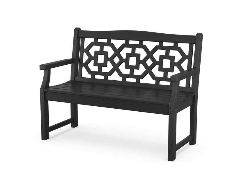 The Martha Stewart by POLYWOOD Chinoiserie 48" Garden Bench is a natural fit for creating beautiful outdoor spaces. Notes of traditional design are seen in the graceful lines and intricate latticework, delicate details that are balanced by the bench's sturdy frame and all-weather durability. Whether nestled among the blooms or perched on your porch, its peaceful presence will beckon more moments outside.