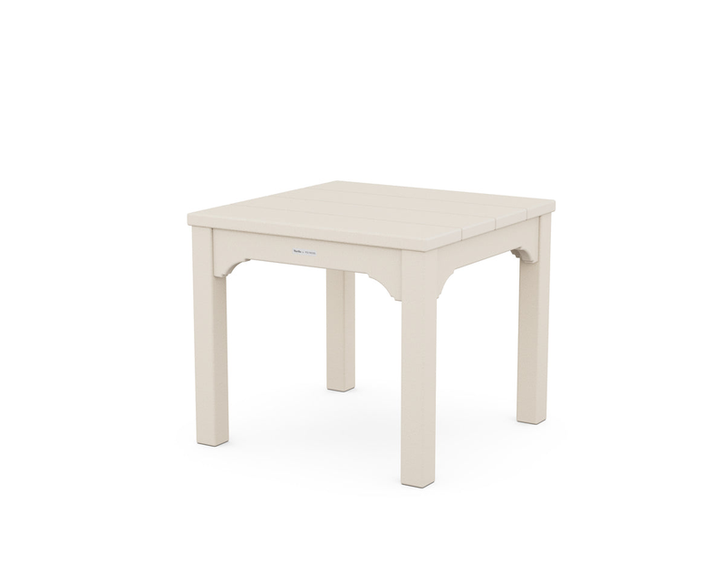 Easy elegance, everyday versatility. The Martha Stewart by POLYWOOD Chinoiserie End Table is a chic accent for resting your drink or displaying garden-fresh bouquets. Borrowing inspiration from vintage designs, the apron's cutout details add dimension and that little something extra to an otherwise clean-lined profile. Style it with the collection's deep seating pieces to create an outdoor living room that feels relaxed and refined.